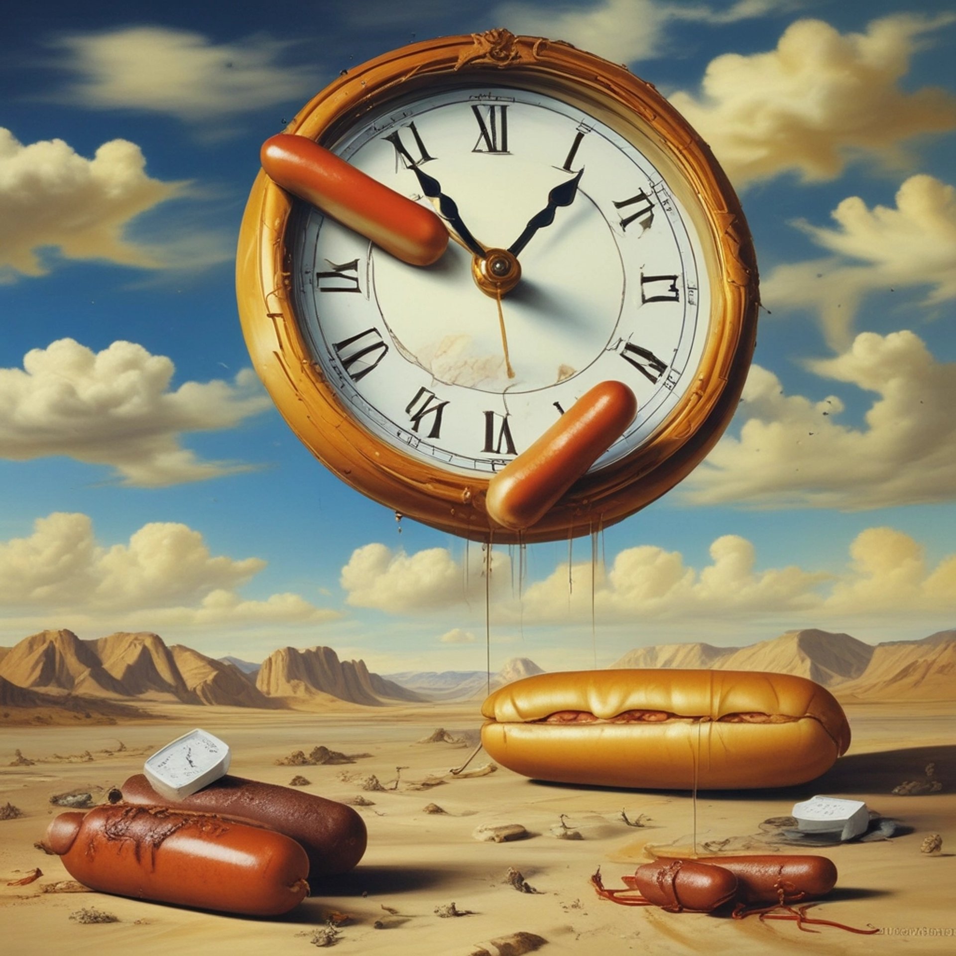 Quirky 3D Greebles and Nurnies for all of your weird 3D needs! Eventually. This is just a placeholder made by AI, YAY! Not. This is a painting not made by Salvador Dali and TOTALLY not based on "The Persistence of Memory" except the melting clocks are replaced by melting hot dogs.